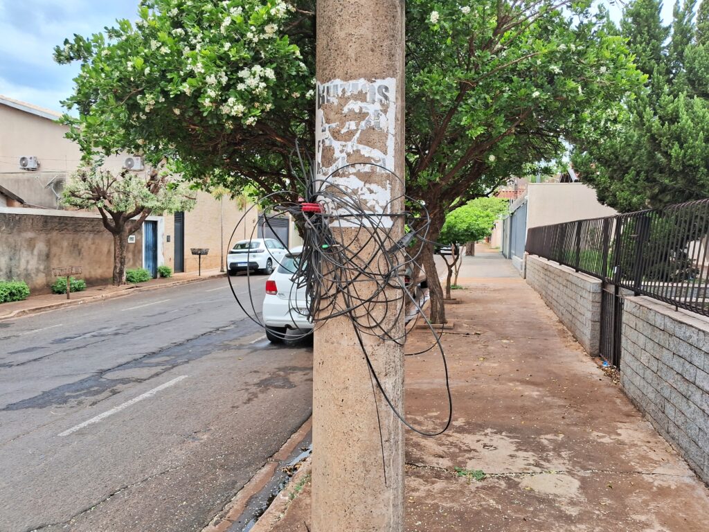Em um breve levantamento feito pela reportagem, em menos de uma hora percorrendo ruas de Barretos, foi possível constatar situações recorrentes de cabos soltos, amarrados em postes e pendurados a baixa altura.