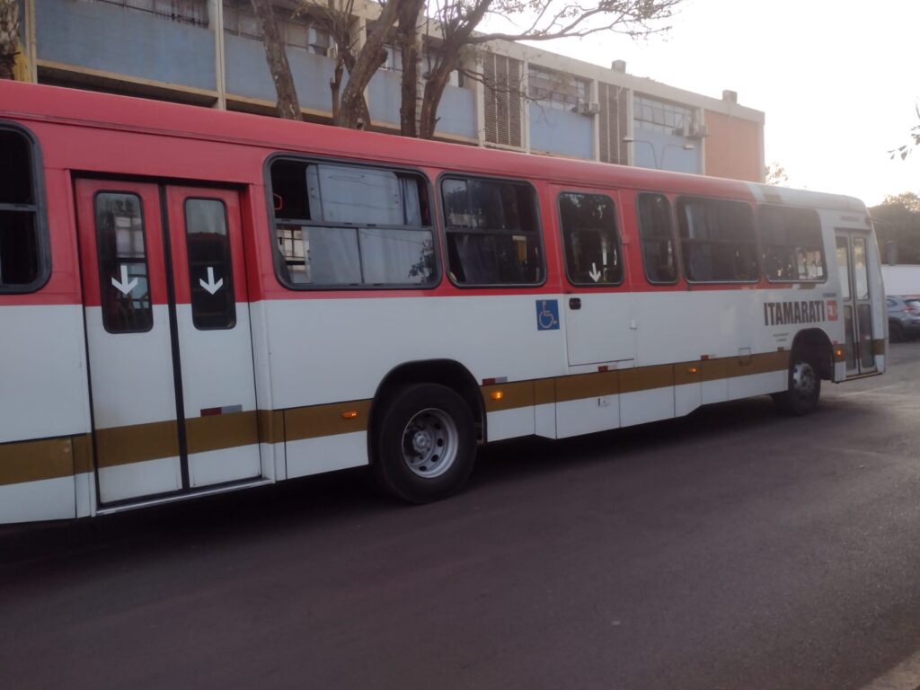 Ônibus em que estavam as vítimas quando ocorreu o roubo