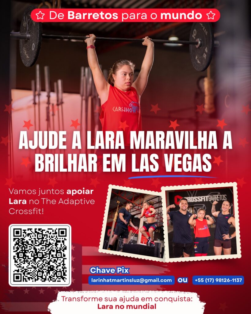 A barretense Lara de Toledo Martins Luz, 16 anos, encerra hoje (14), a sua participação na competição de Cross Fit Adaptado, que teve início na sexta-feira (12), em Las Vegas nos Estados Unidos. Com Síndrome de Dow a atleta está enfrentando adversários de vários países na categoria intelectual w/CC Female, com o apoio do estagiário de educação física, Leonardo Ferreira Mazula da academia Cross Fit de Barretos.
