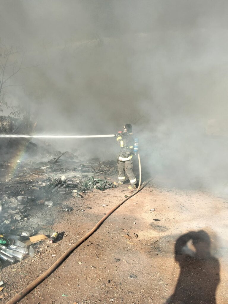 “ Nós fomos acionados para um incêndio de grandes proporções nessa empresa de reciclagem, porém, quando chegamos não havia ninguém no estabelecimento. O portão estava aberto, adentramos e começamos o combate. Como é um material de muito combustível e em grande quantidade de material, fizemos um contato com a usina que nos apoiou, fazendo o apoio de água e começamos a extinção. E acabamos tendo êxito em não deixar o incêndio estar se propagando para outro local. Ficamos em torno de duas horas trabalhando até deixar o local em segurança. As causas são desconhecidas, não conseguimos contato com o proprietário, havia apenas um caseiro que chegou posteriormente e que mora no terreno, porém, não soube nos informar nada que tenha acontecido fora da normalidade. Em relação a danos no barracão, a parte de estrutural de metal até que não sofreu danos, porém, a parte de tijolo devido a caloria, pode ser que tenha tido algum dano. A quantidade de reciclagem era muito grande, tanto dentro do barracão como ao entorno dele”, confirmou o sargento Odilon.