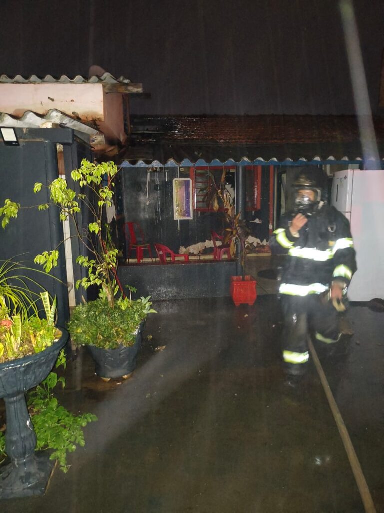 “Quando nós chegamos, alguns populares haviam conseguido abrir o portão e adentrar ao local com extintores. Eles também retiraram o botijão de gás que estava no local. Porém, com a nossa chegada, havia dois cômodos tomados pelo fogo. Nós atuamos de maneira imediata, não deixando passar para os outros cômodos da casa. O fogo pegou no quarto e no banheiro e foi extinto no local. No quarto e no banheiro, os objetos e materiais foram queimados e, por ser forro de madeira, também foi consumido o teto desses cômodos. Não havia ninguém no imóvel quando o incêndio começou. O proprietário estava em Guaíra quando ficou sabendo do fato e se deslocou para verificar os prejuízos. As causas do incêndio deverão ser investigadas, porém, num primeiro momento, a gente acredita que tenha ocorrido um problema na parte elétrica, a princípio no quarto afetado. Trabalhamos no local por cerca de 40 minutos”, confirmou o sargento Duarte.
