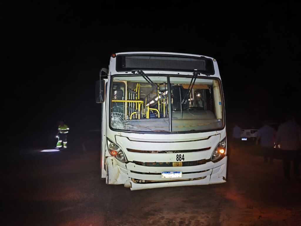 O motorista do ônibus alegou que seguia em velocidade compatível com o limite regulamentado, com os faróis acesos, quando, repentinamente, visualizou um indivíduo transitando sobre a faixa de rolamento, próximo ao centro da pista.