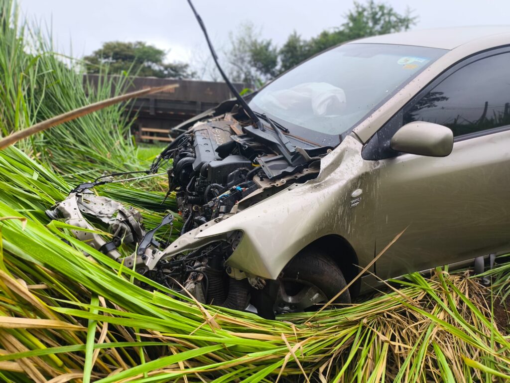 Ford KA após acidente no km 144 da rodovia Assis Chateaubriand
