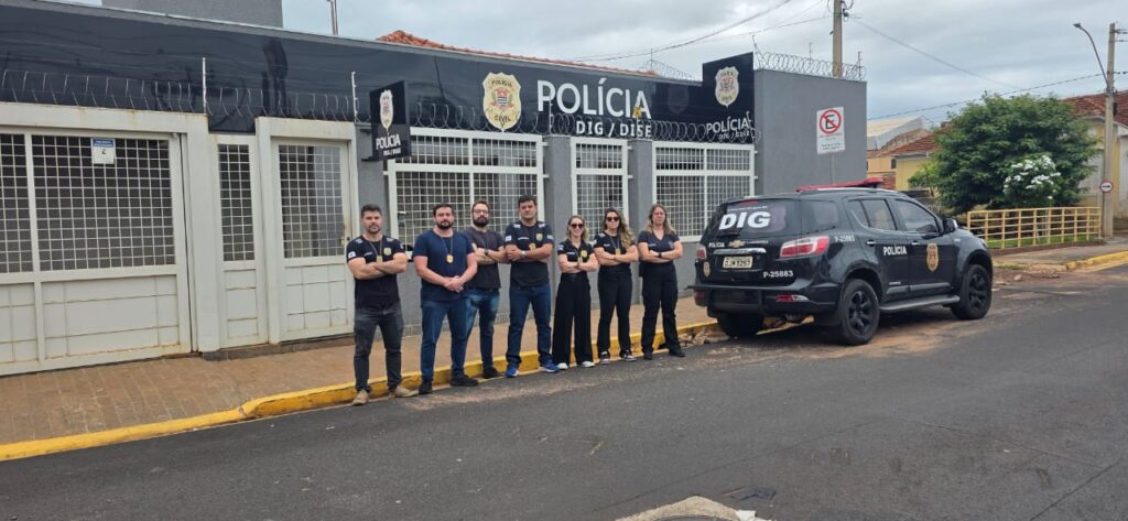 Equipes das Polícias Civil de Minas e São Paulo que realizaram a prisão do autor