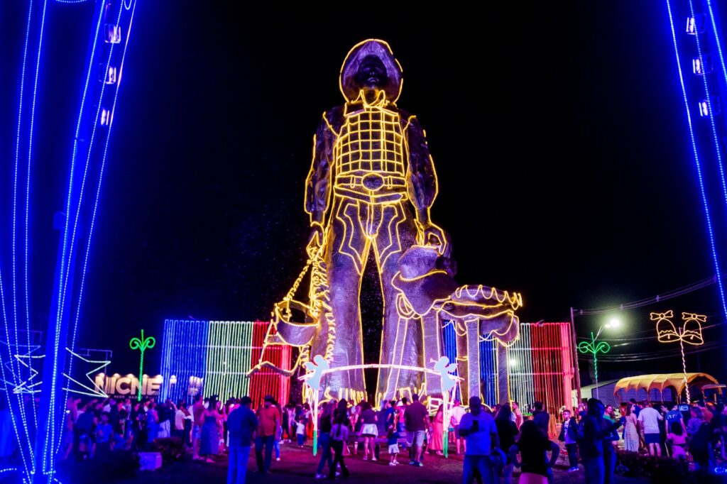 O Parque do Peão de Barretos deu início oficial às celebrações natalinas na noite de 15 de novembro, reunindo famílias para acompanhar a inauguração da nova decoração temática preparada pela Associação Os Independentes. A entrada principal do complexo, o Monumento ao Peão, a Roseta, o Memorial e toda a fachada receberam elementos especiais e mais de 15 mil metros de luzes de LED, criando um cenário iluminado que destaca símbolos tradicionais da cultura local.