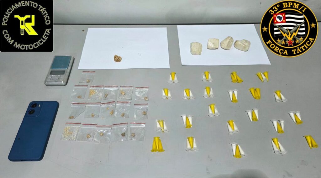 Ao notar a presença dos policiais, ele tentou fugir, mas acabou alcançado e detido, portando cinco microtubos de cocaína, dois saquinhos com porções de crack e um celular.